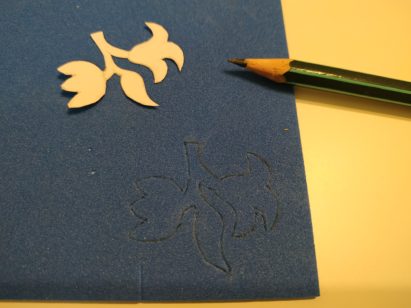 • przygotowany w kroku pierwszym papierowy wykrój motywu,