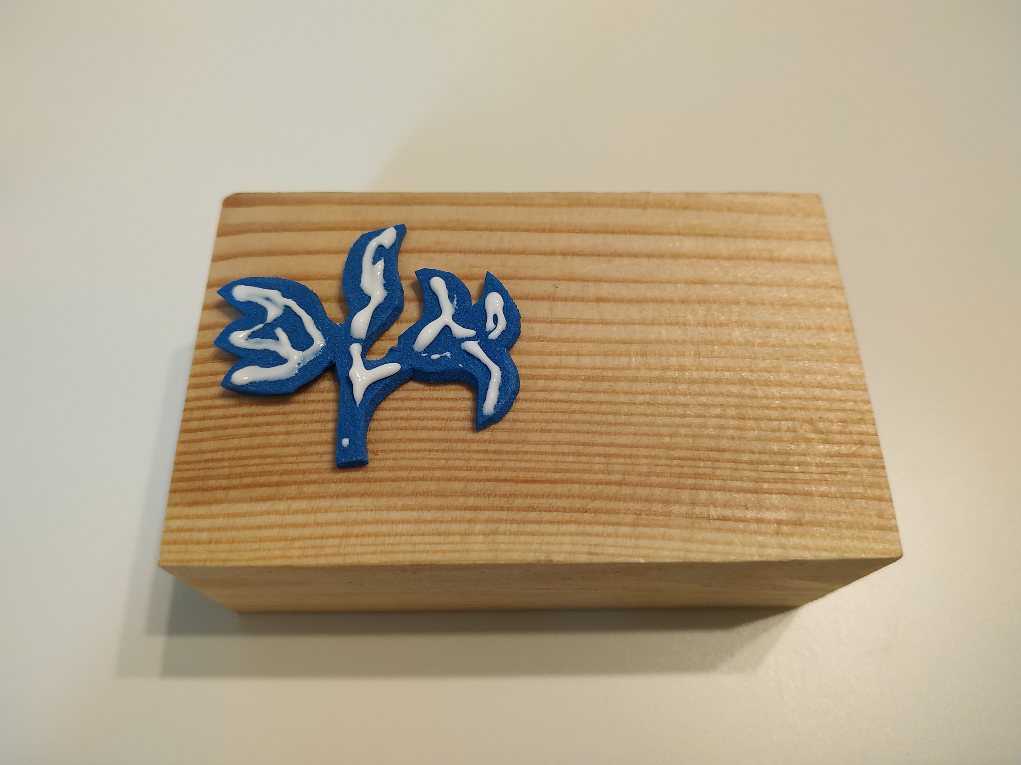 5. Smarujemy klejem jedną stronę motywu i przyklejamy go do drewnianego klocka – powstaje pieczątka do drukowania. Odczekujemy, aż klej zwiąże.
